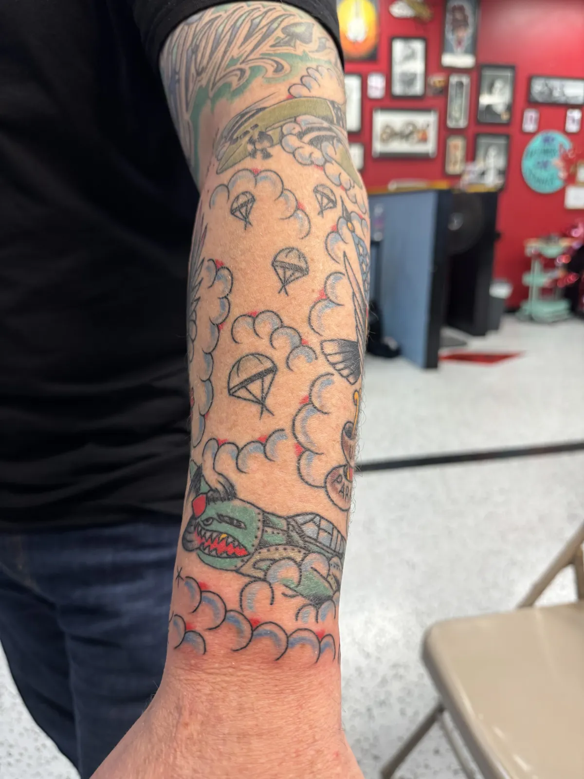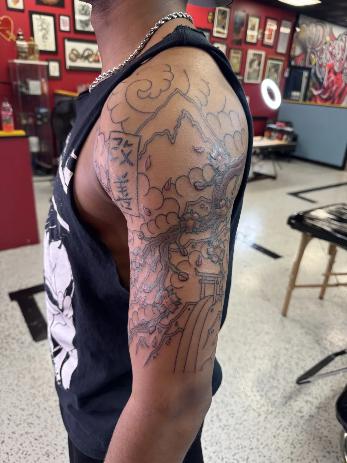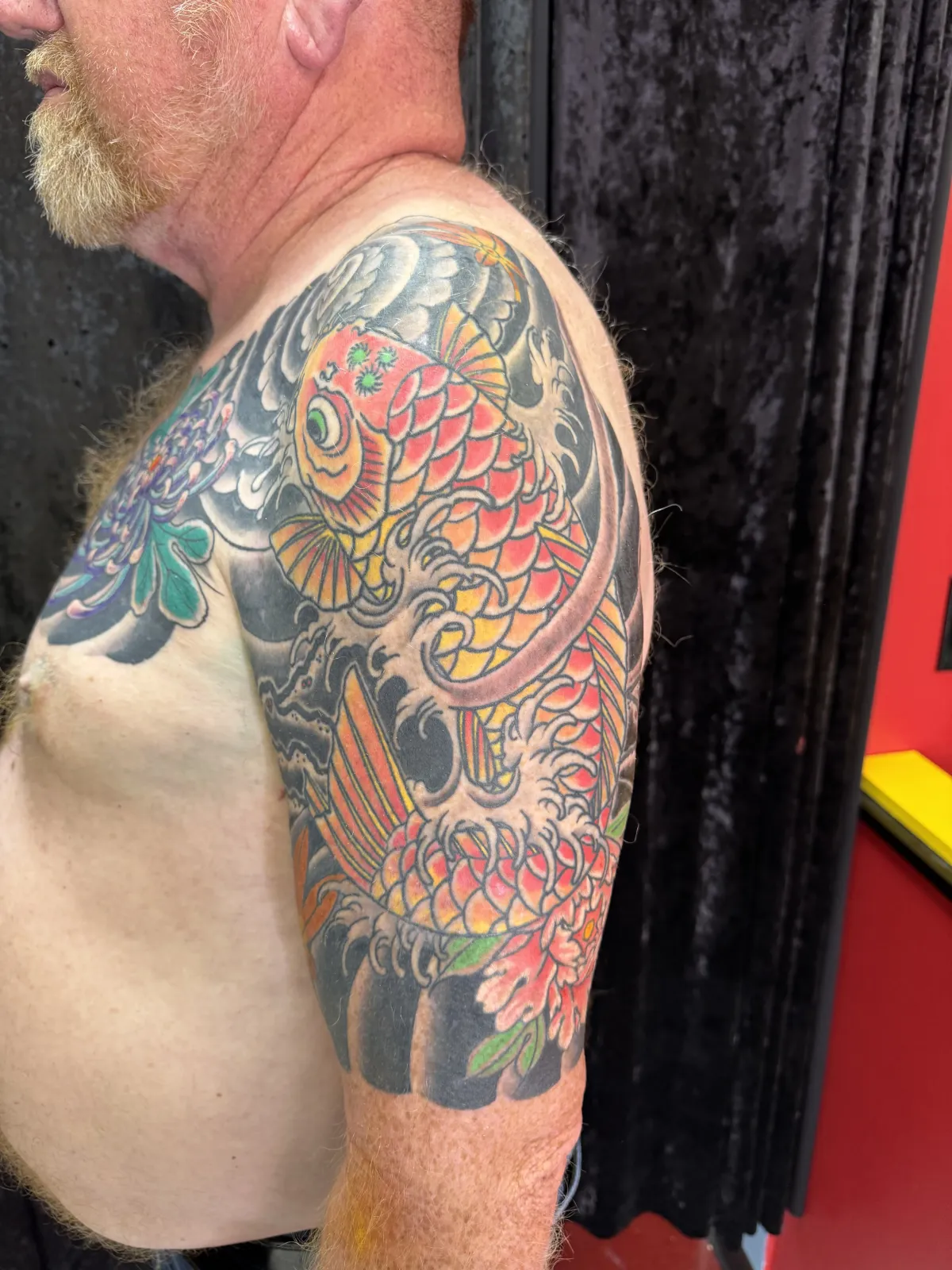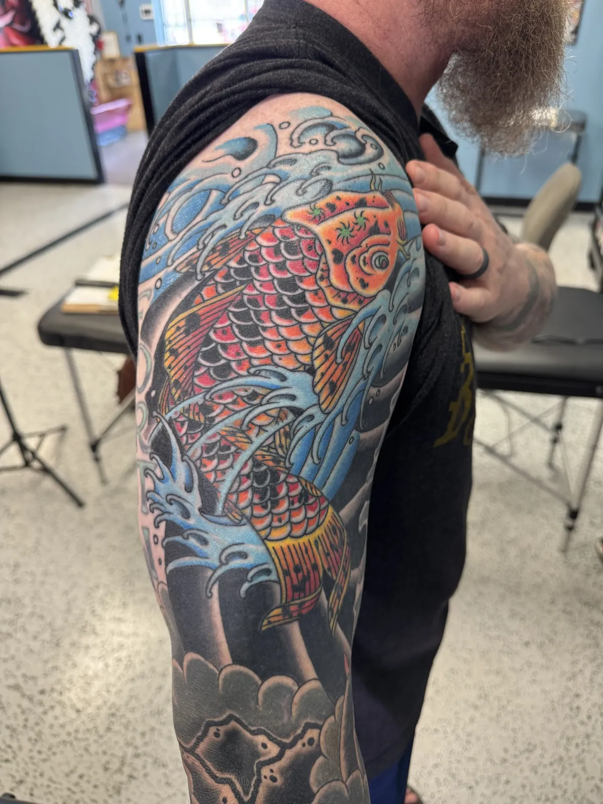 His style is rooted in American Traditional and Japanese traditional influences, and he continually seeks new ways to improve his craft while staying true to the art form.